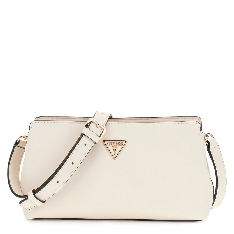 Esalta il tuo stile con questa piccola borsa a tracolla in similpelle, dotata di una lunga tracolla regolabile e numerose tasche con chiusura a zip e bottone. Decorata con l'iconico logo Guess e rifinita con finiture in oro pallido, questa borsa è chic e versatile.