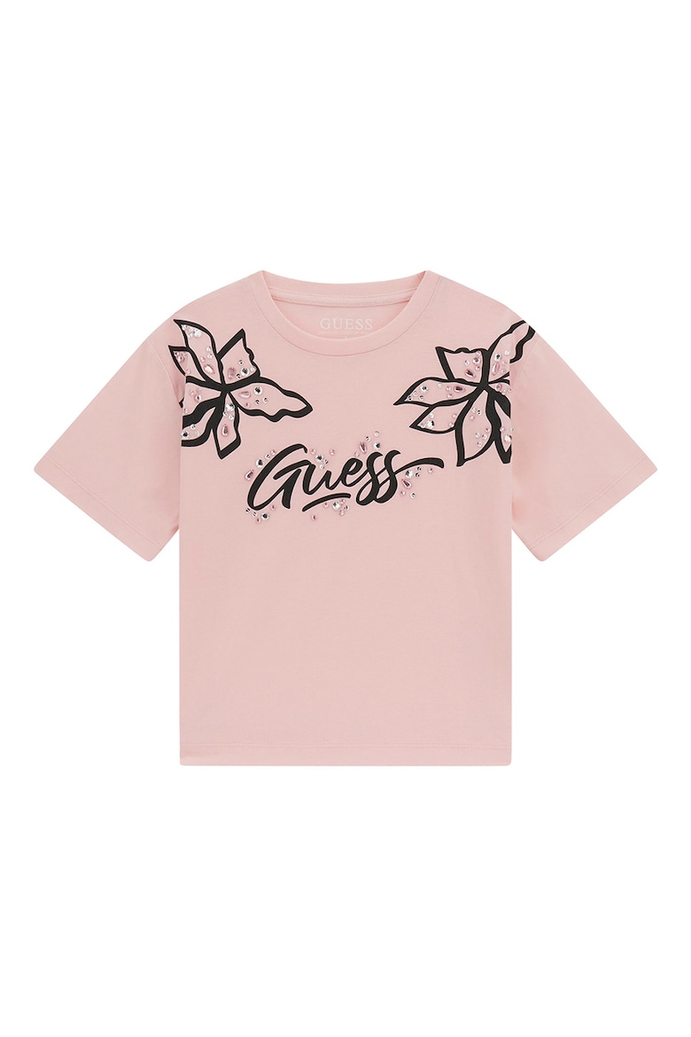 T-shirt in jersey di cotone con vestibilità boxyGirocollo e maniche corte.Logo frontale stampato.Dettagli strass.