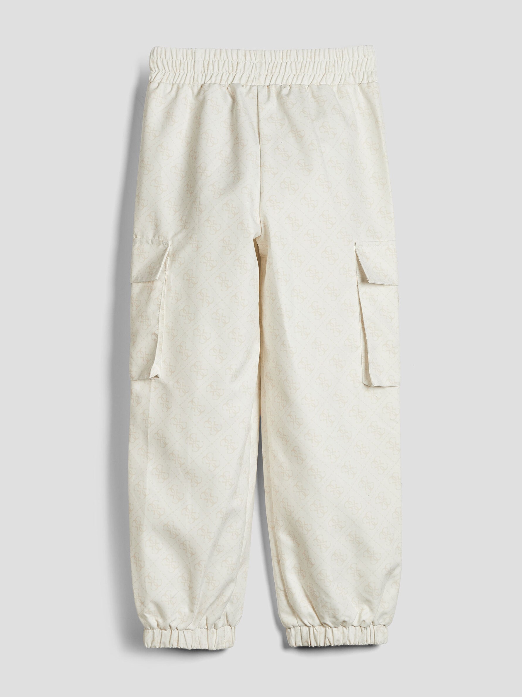 Pantaloni cargo Guess in tessuto intrecciato, elastico in vita, tasche laterali cargo, orlo elastico e stampa monogramma.