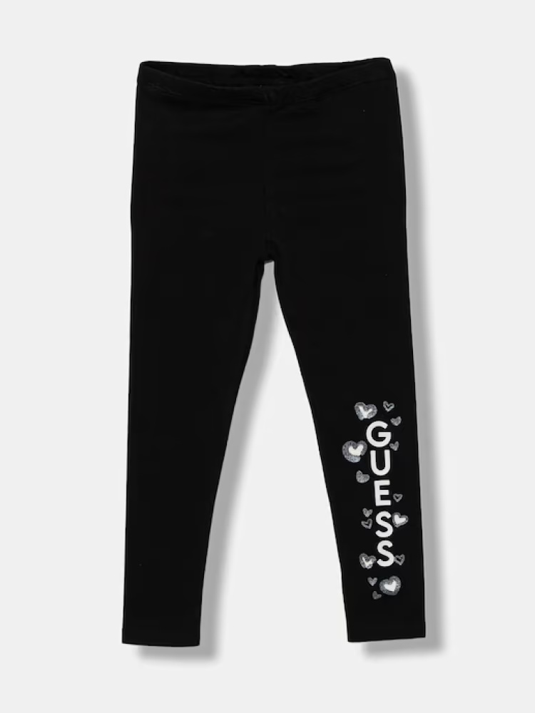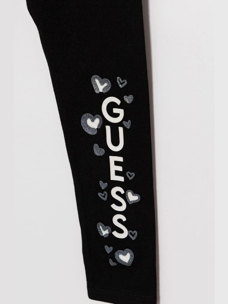* Logo Guess verticale con cuori stampati sulla gamba