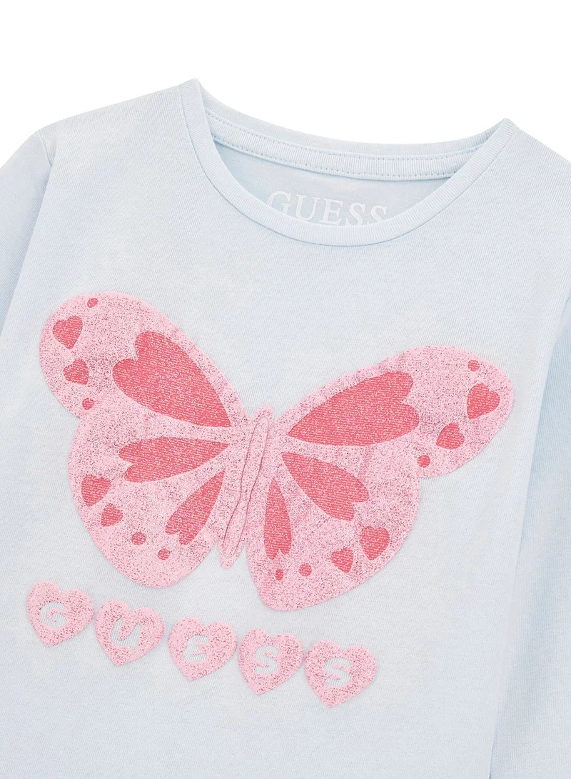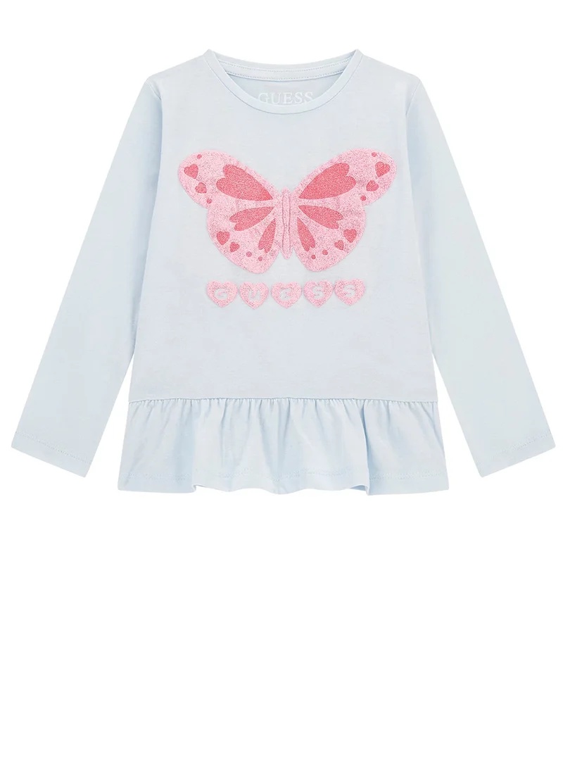 * Maglia a maniche lunghe con stampa frontale di farfalla glitterata