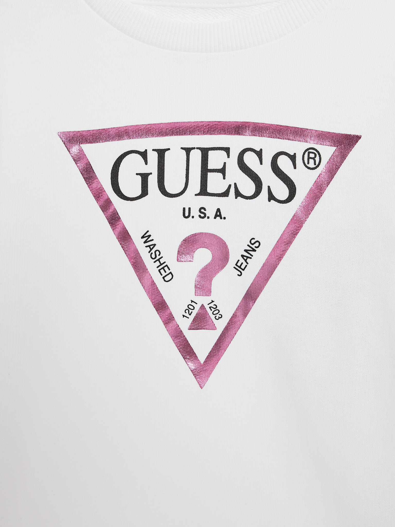 Iconico logo GUESS triangolare stampato sul davanti.