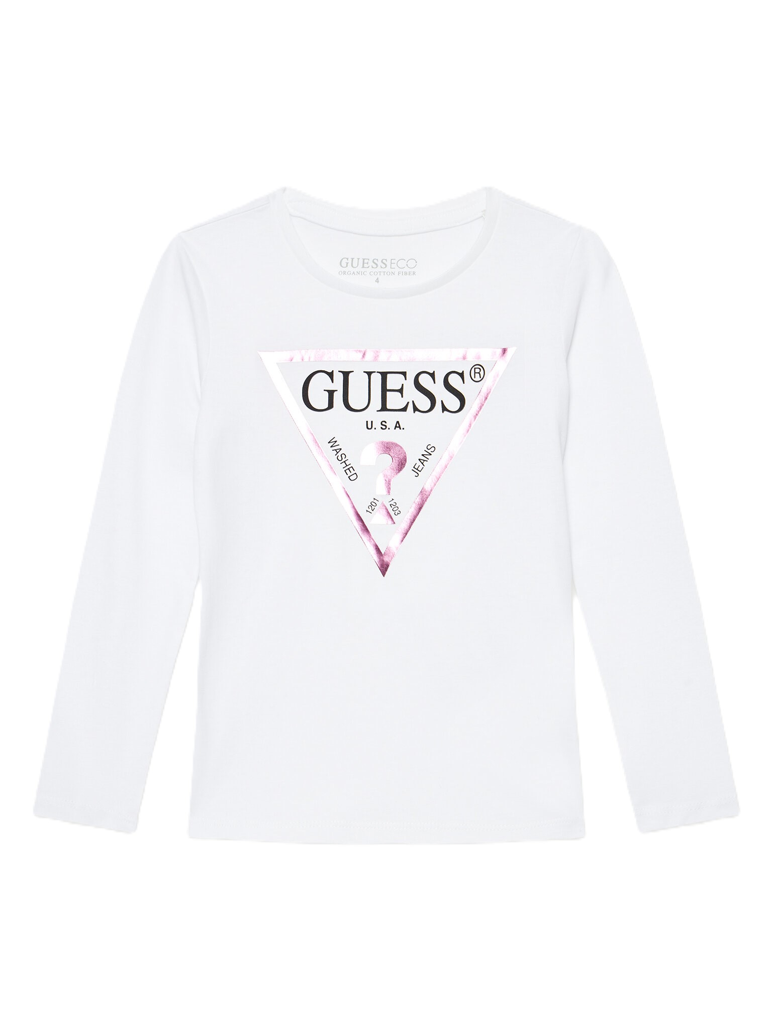 Iconico logo GUESS triangolare stampato sul davanti.