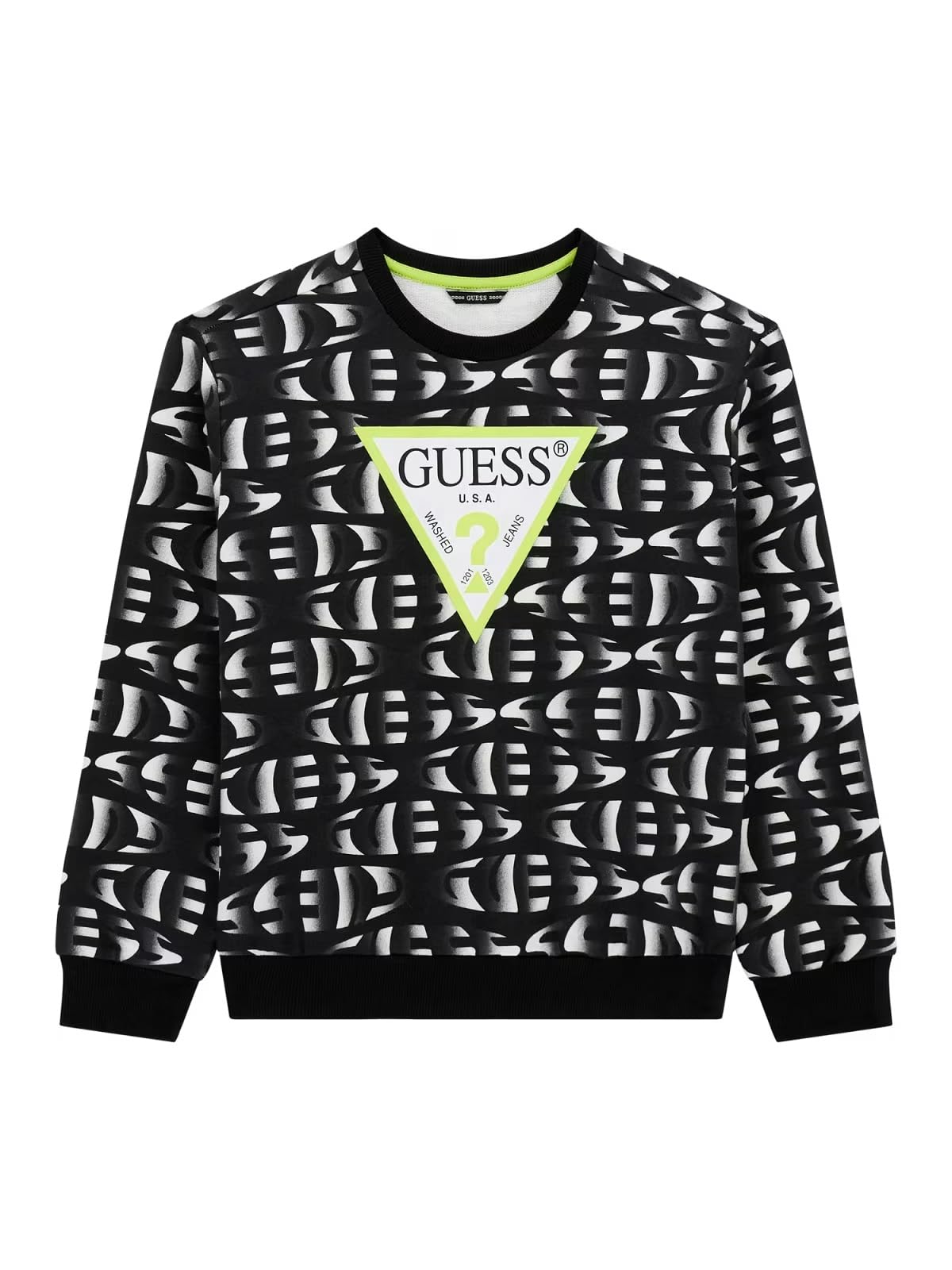 Ampio logo triangolare GUESS stampato sul petlo.