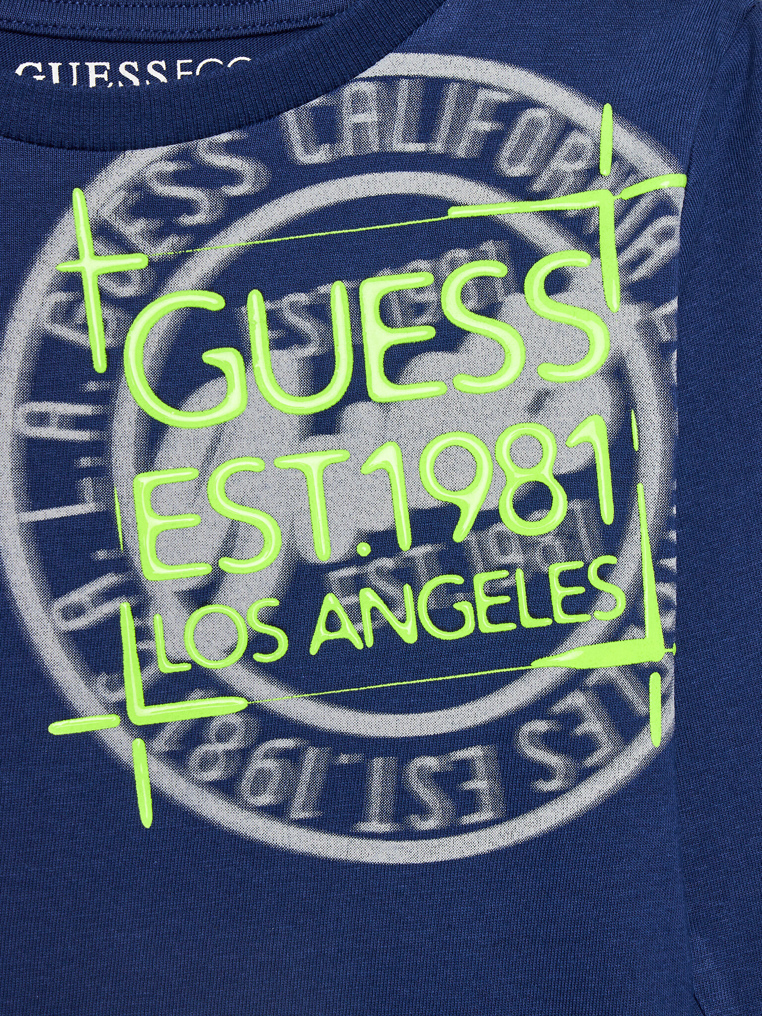 T-shirt a maniche corte con fantasia logata a lato, maniche lunghe, girocollo, cuciture a contrasto colore