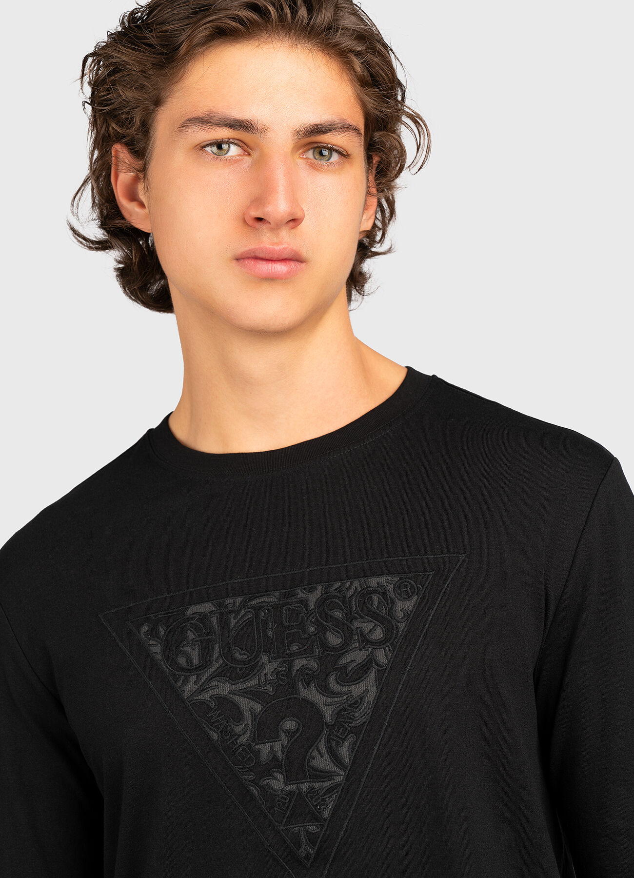 - Maglietta a maniche lunghe con logo triangolare Guess in rilievo