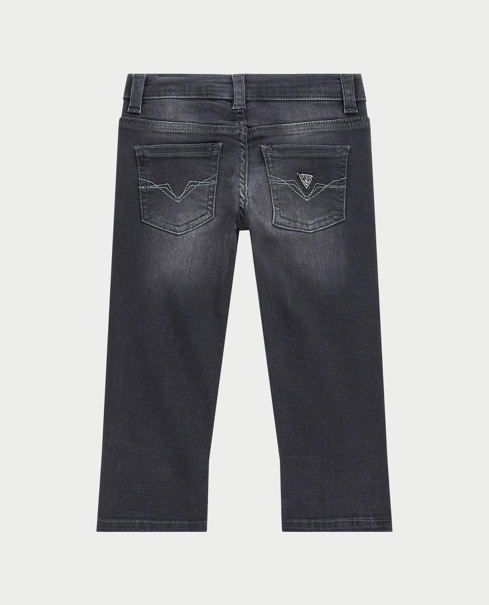Jeans Guess in misto cotone per bambini modello 5 tasche classico, vita media e gamba con vestibilità slim, chiusura con zip e bottone. Colore nero