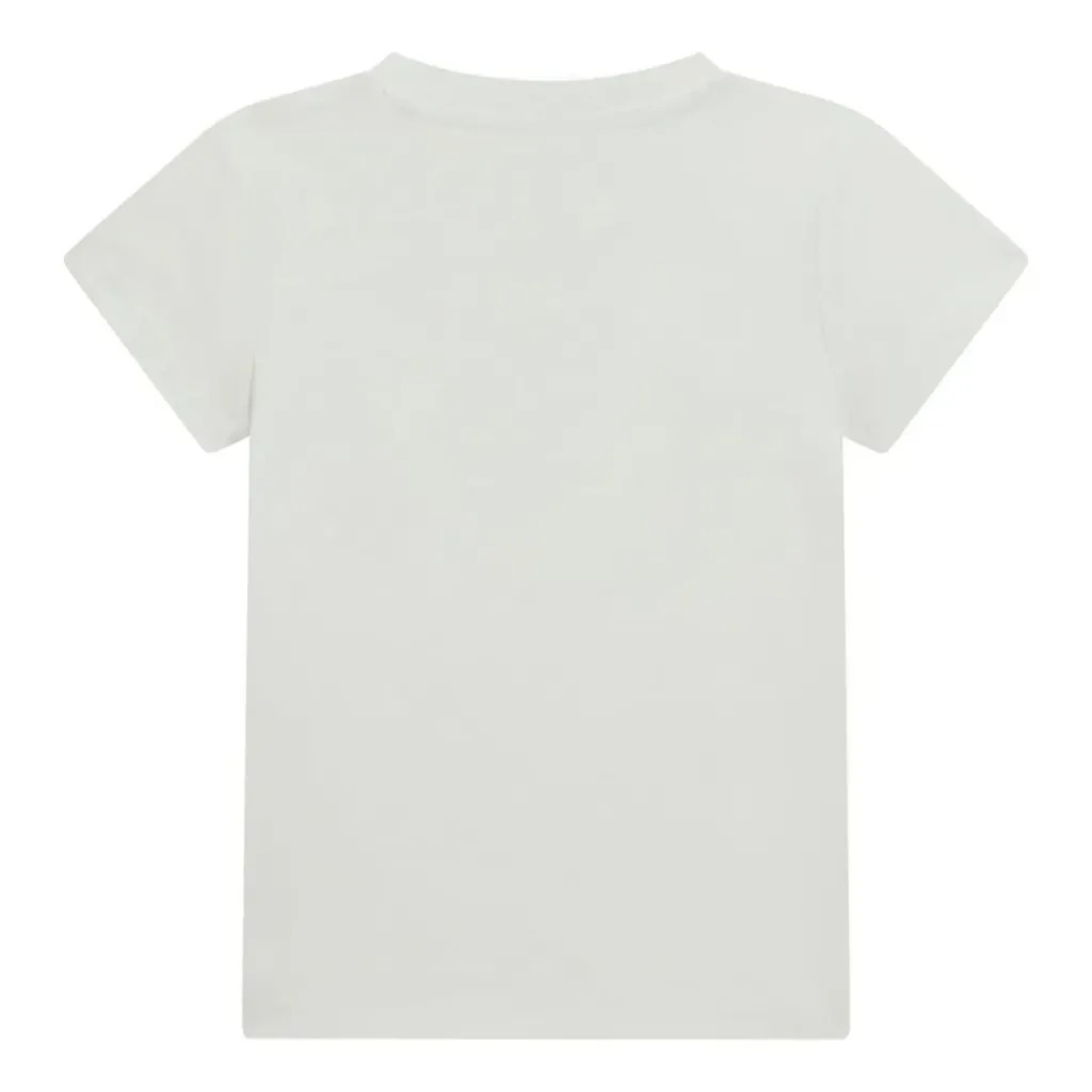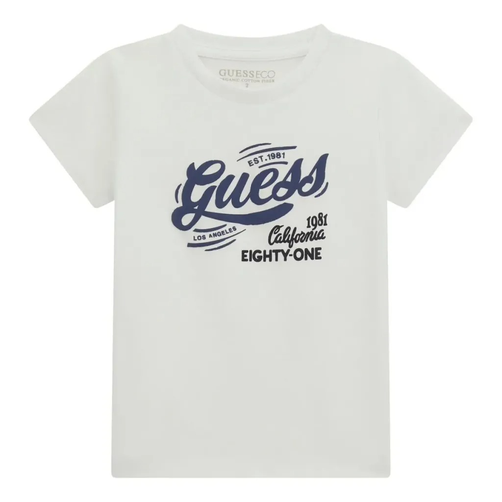 Stampa centrale con logo Guess in stile vintage.