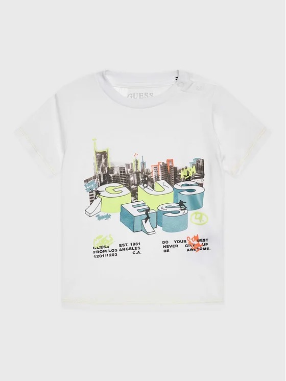 Compelto Guess, t-shirt a maniche corte con stampa frontale e pantalone.