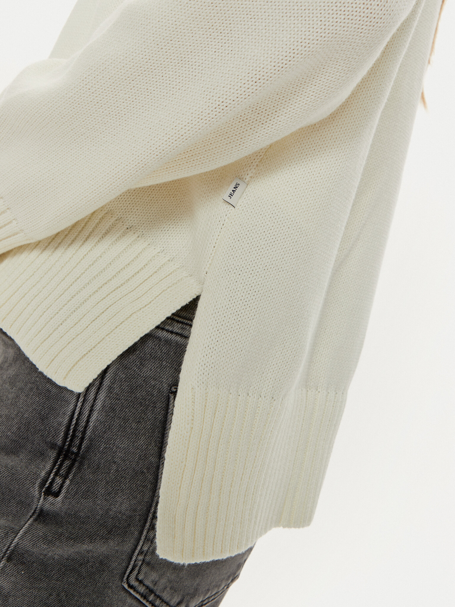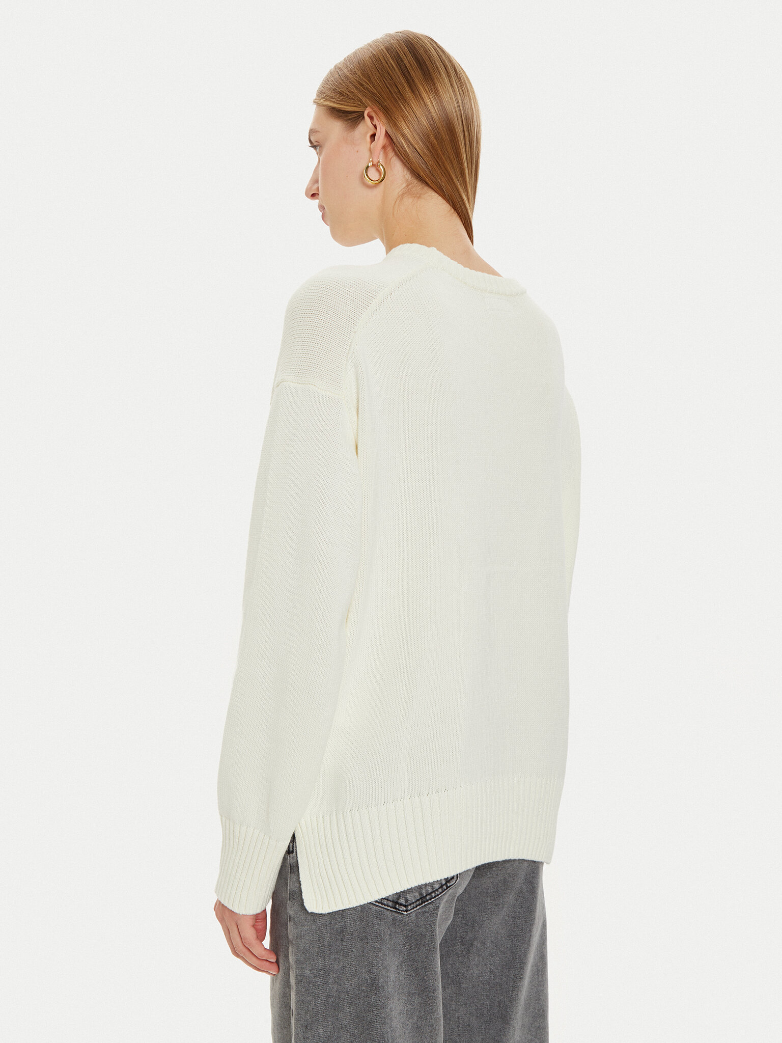 Pullover a girocollo in maglia. Maniche lunghe. Maxi logo frontale a intarsio. Vestibilità comoda. Polsini e fondo a costine. Tessuto morbido al tatto.