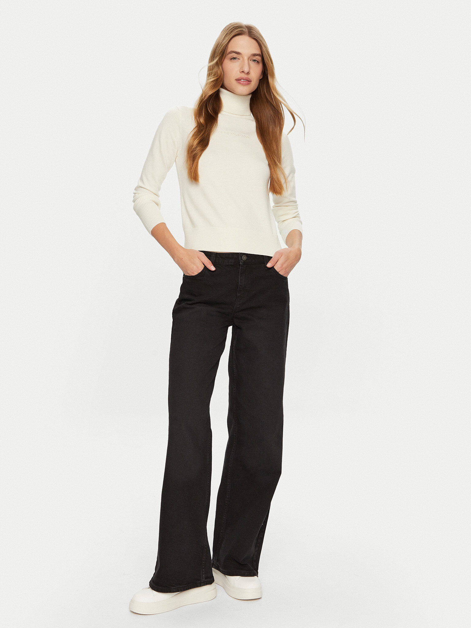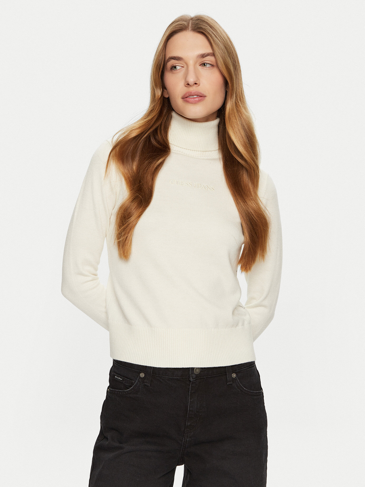 - Maglione a collo alto con logo discreto sul petto