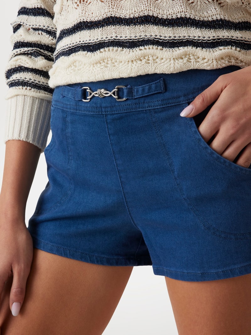 Shorts jeans in misto lyocell e seta stretch.