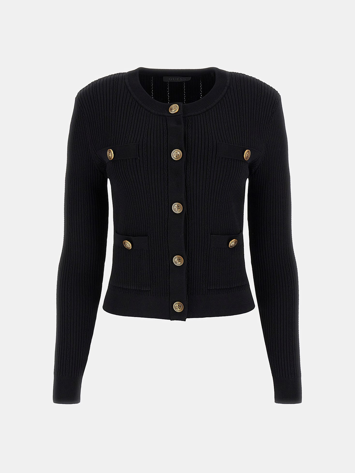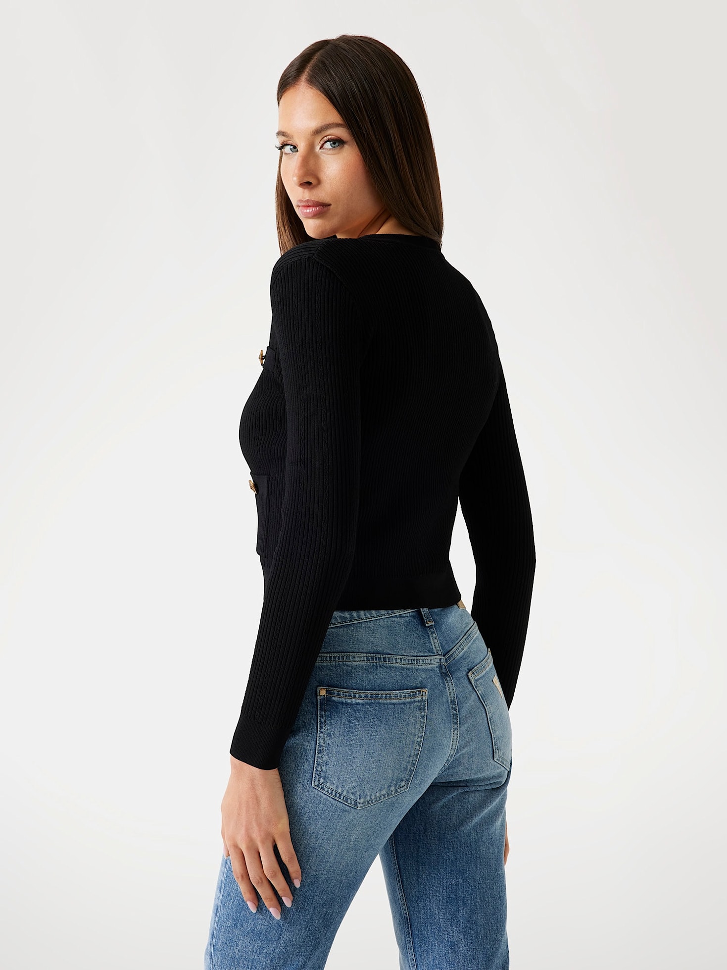 Tasche frontali applicate con bottone e tasche decorative con bottone sul petto.