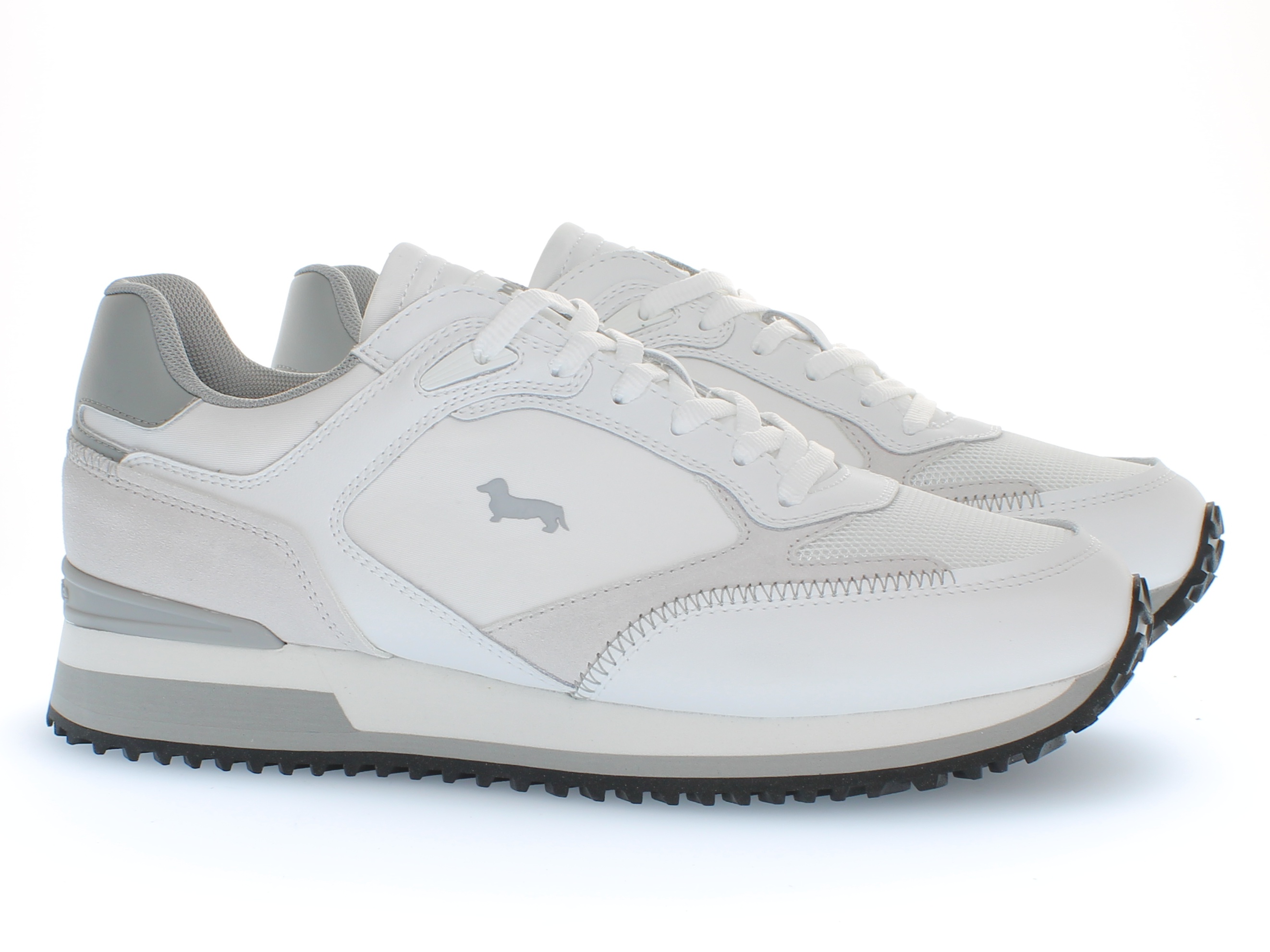 La sneaker presenta una tomaia in simil-pelle arricchita da inserti in vero camoscio, che creano un contrasto elegante e sofisticato. La suola in gomma bianca, con dettagli in contrasto, conferisce un tocco moderno, mentre le cuciture Zig-Zag e i profili in contrasto aggiungono carattere al design. Il loop posteriore in tessuto logato e l'iconico bassotto in PVC in rilievo sul lato donano un'ulteriore nota distintiva. Le forature laterali e sulla punta migliorano la traspirabilità. Il design audace e di gusto, rende questa calzatura un perfetto equilibrio tra stile e funzionalità.