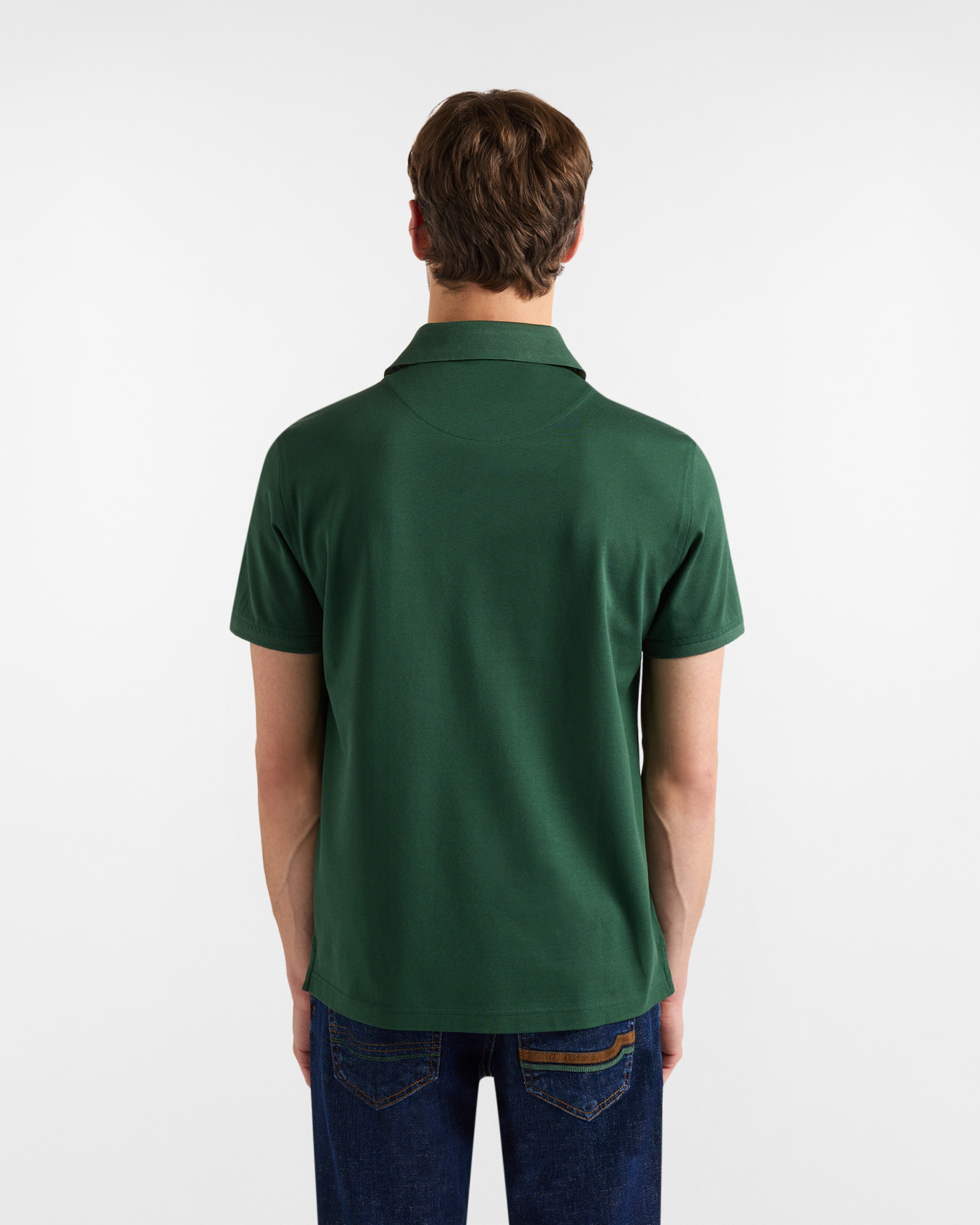 Scopri questa polo uomo realizzata in leggero piquet di cotone mercerizzato, un must-have per il tuo guardaroba quotidiano. Il design presenta una chiusura a tre bottoni e un taschino frontale con stampa a contrasto che dona un tocco di originalità e funzionalità. Colletto e bordo manica in costina, vestibilità regular e Bassotto ricamato lato cuore.
