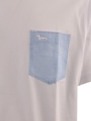 Questa T-shirt da uomo in puro cotone morbida e leggera presenta un fresco design a mezze maniche ed è impreziosita da un originale dettaglio di ispirazione sartoriale: un taschino a contrasto sul petto con bordino decorato e con liconico bassotto Blaine. Il risultato? Un look casual con un tocco eclettico per sintonizzarsi con il mood della bella stagione.