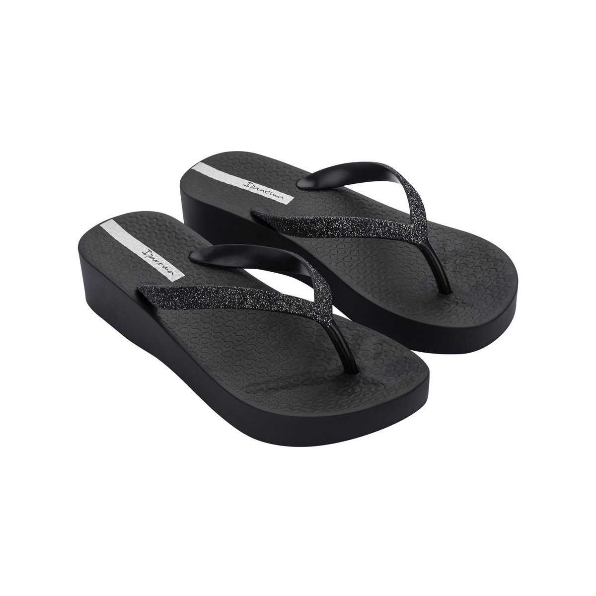 Una infradito con plateau Ipanema dal perfetto stile glamour! I cinturini sono impreziositi da elementi glitterati, che aggiungono un tocco scintillante e femminile.