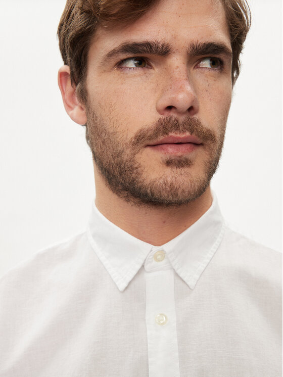 Camicia con letto dal taglio classico, chiusura a bottoni centrale, maniche lunghe, orlo dritto