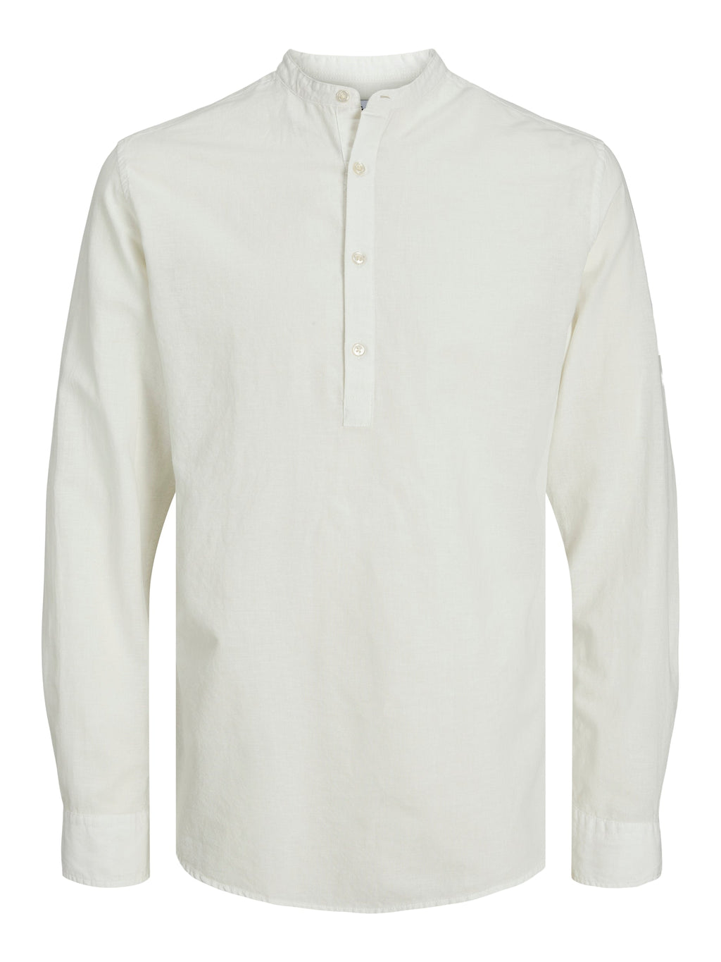 Camicia per uomo con chiusura a metà tramite bottoni, colletto alla coreana, maniche lunghe con bottoni, orlo svasato