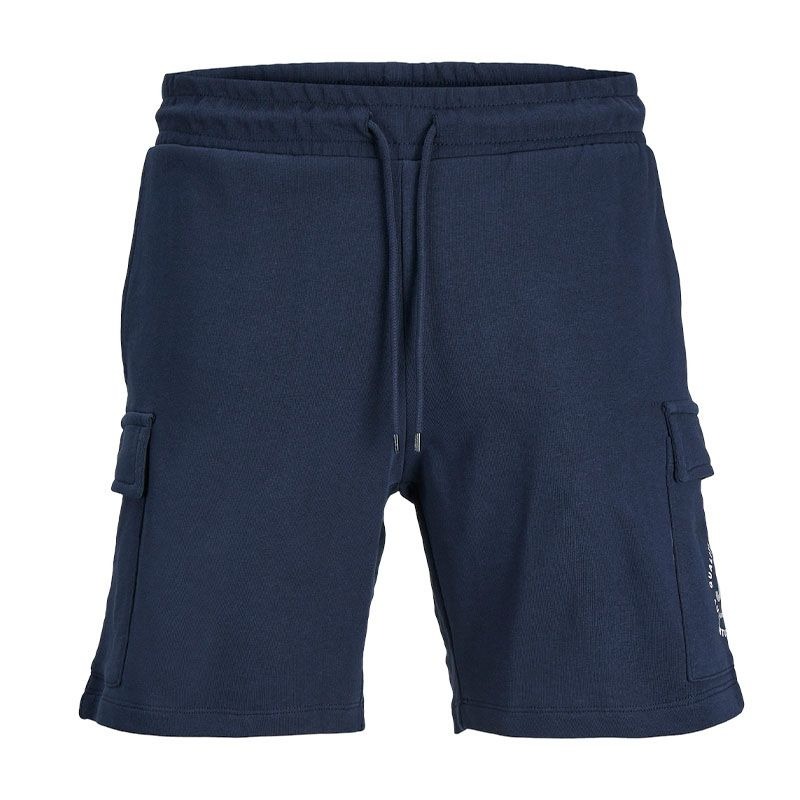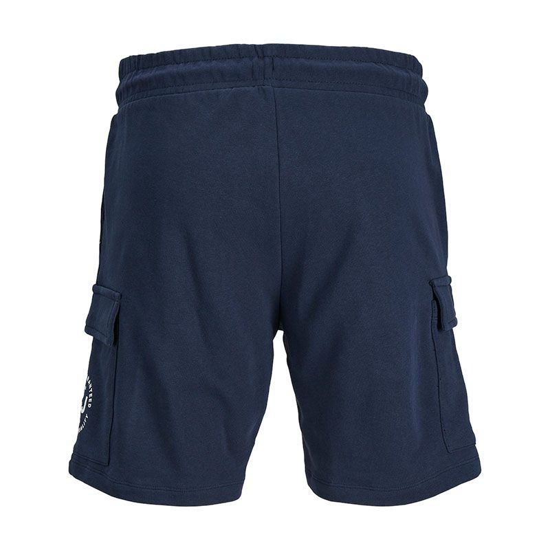 Bermuda con vita elasticizzata con chiusura a lacci, tasche laterali e cargo, logo a contrasto colore posto su gamba