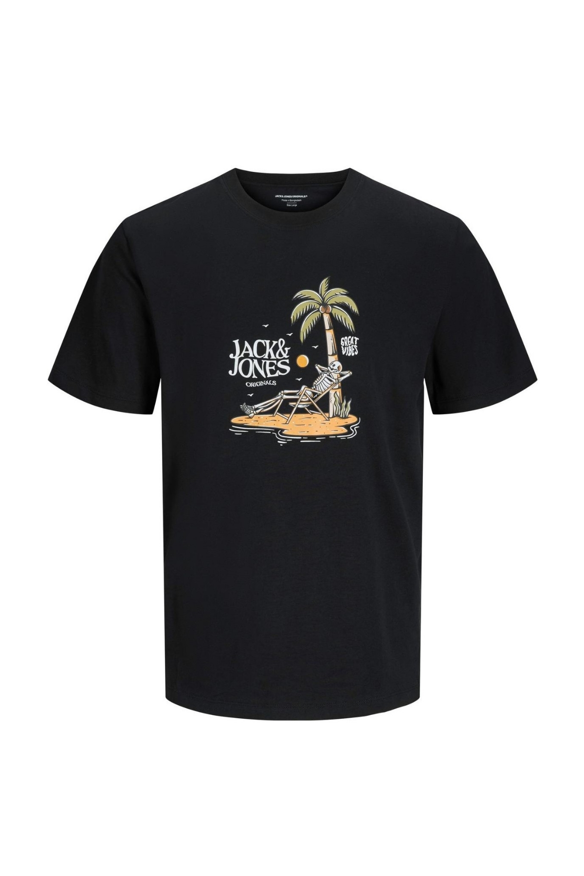Stampa con logo Jack & Jones e grafica tropicale.