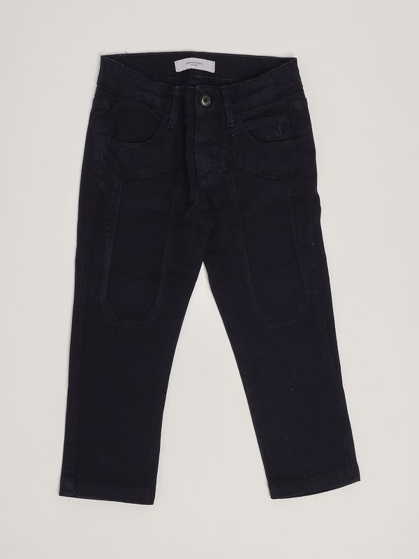 Realizzato in cotone stretch, questo pantalone presenta una chiusura con bottone e cerniera, cinque tasche, logo ricamato su taschino porta monete, una salpa logo cucita sul retro e toppe cucite sulle gambe.