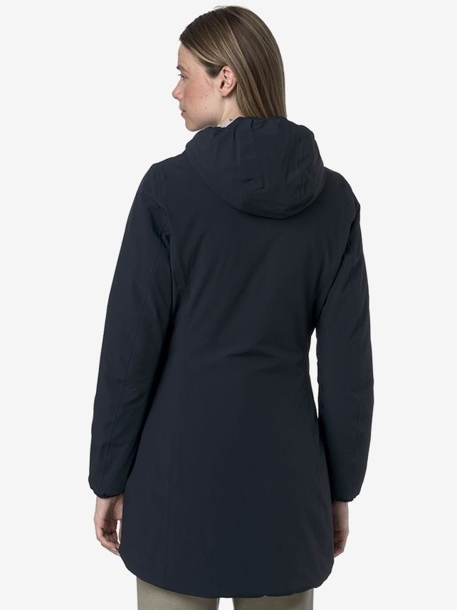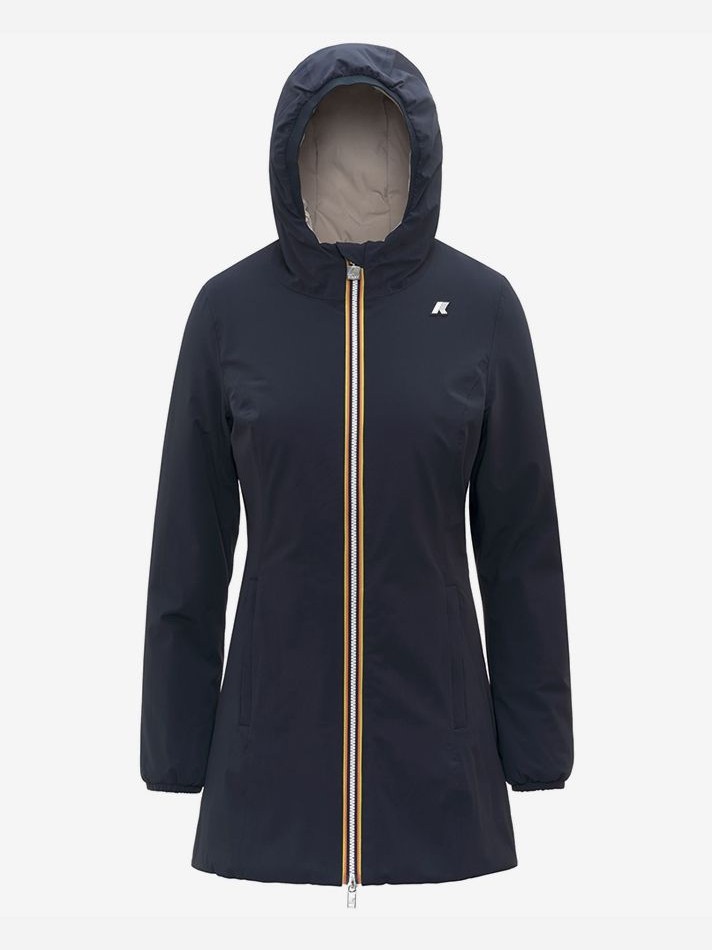 Denise è la giacca da donna con lunghezza a tre quarti che reinterpreta l'ispirazione funzionale K-Way in chiave femminile. Il modello combina un lato in poliestere elasticizzato impermeabile tinta unita e un lato in poliestere antivento dal colore a contrasto. L'imbottitura in ovatta offre un grado di calore medio, ideale per la mezza stagione, mentre le cuciture termonastrate isolano dal freddo e offrono maggiore comfort durante l'attività outdoor.