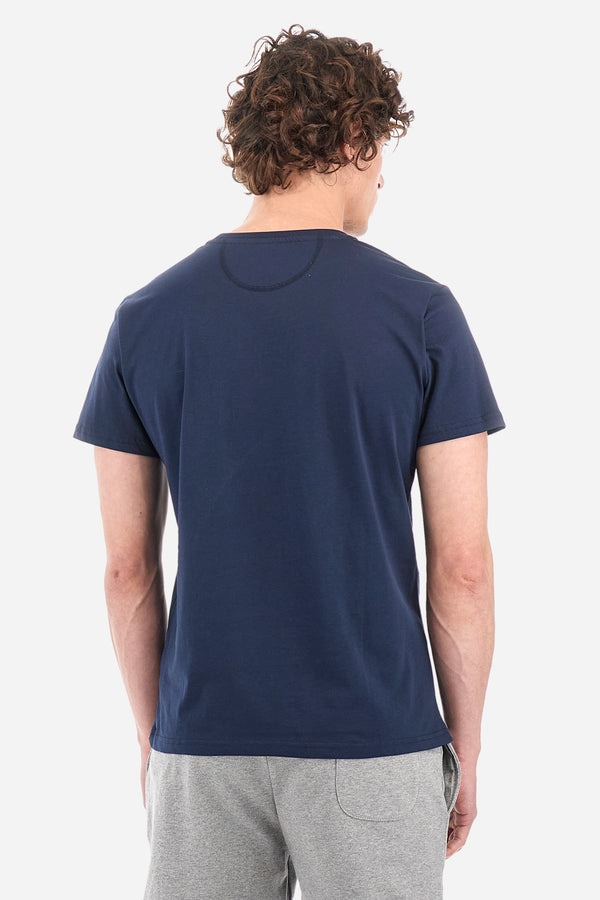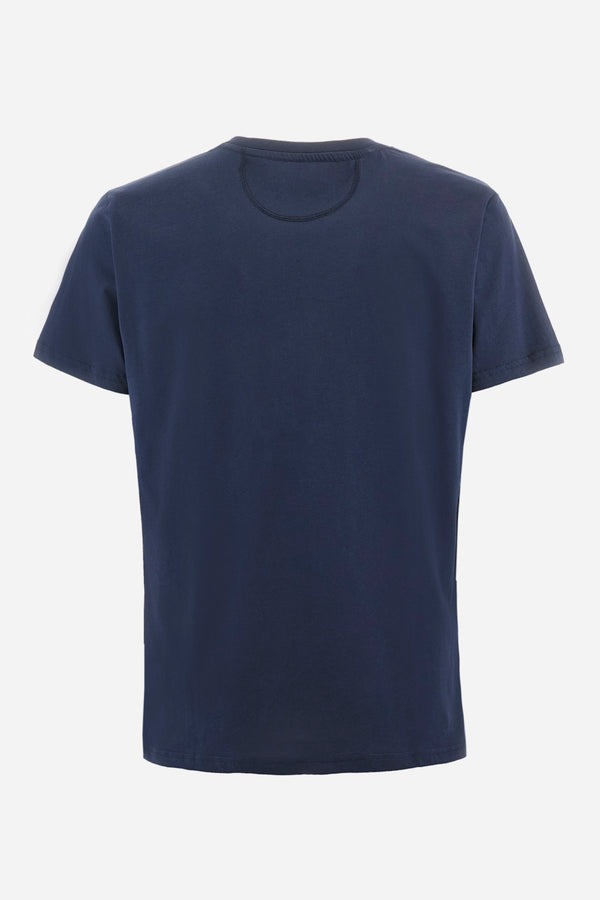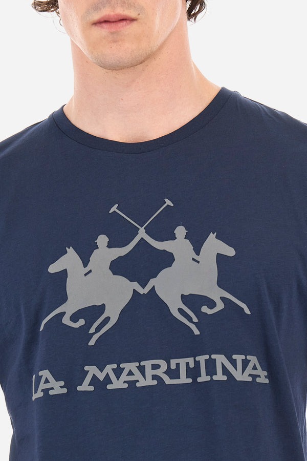 T-shirt da uomo a manica corta con girocollo e tinta unita. Presenta un grande logo stampato sul davanti ed è realizzata in 100% cotone con taglio regular fit. Può essere abbinata con un pantalone per un look casual e moderno.