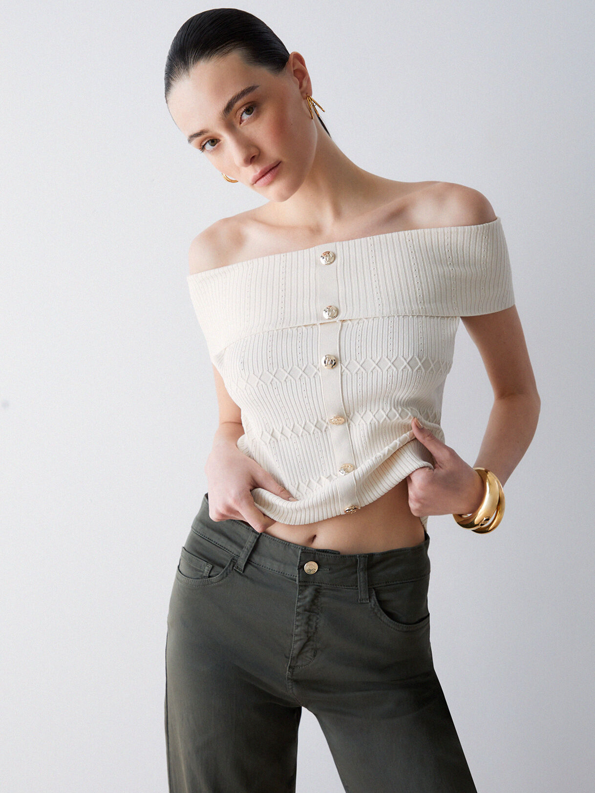 - Scollo bardot con spalle scoperte