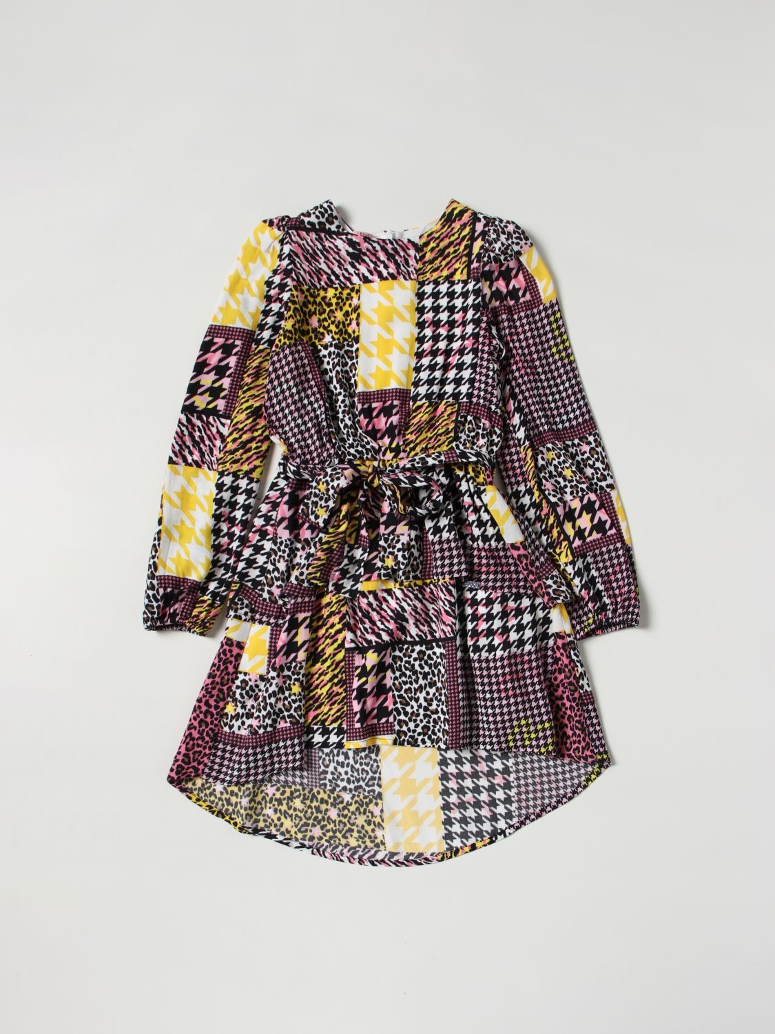 Abito Liu Jo bambina con fantasia mista multicolore, orlo svasato, maniche lunghe e laccio in vita tema su tema