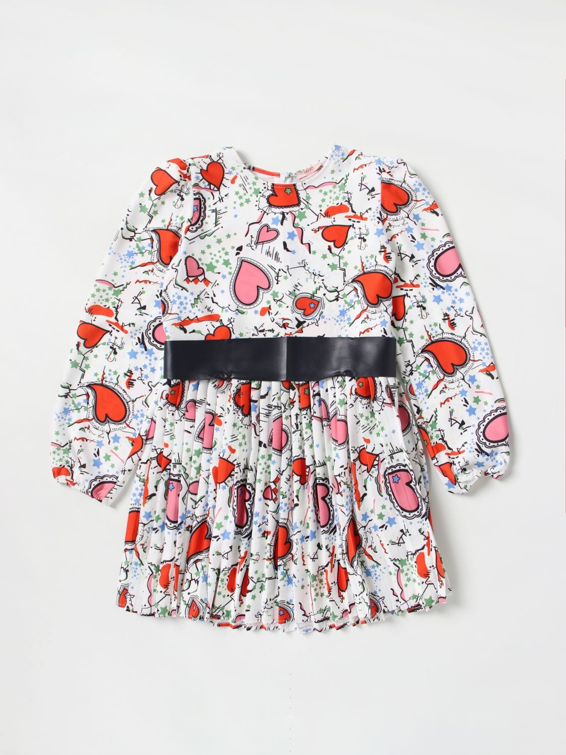 Abito Liu Jo per bambina con fantasia a cuori all-over e girocollo, laccio in ecopelle in vita