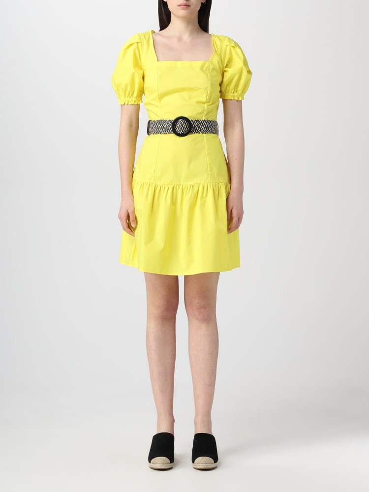 Abito laconico leggero della collezione LIU JO. Il modello ha un taglio aderente con scollo quadrato ed è completato da una cintura abbinata che sottolinea un grazioso punto vita femminile. Il prodotto è realizzato in cotone naturale e traspirante.
