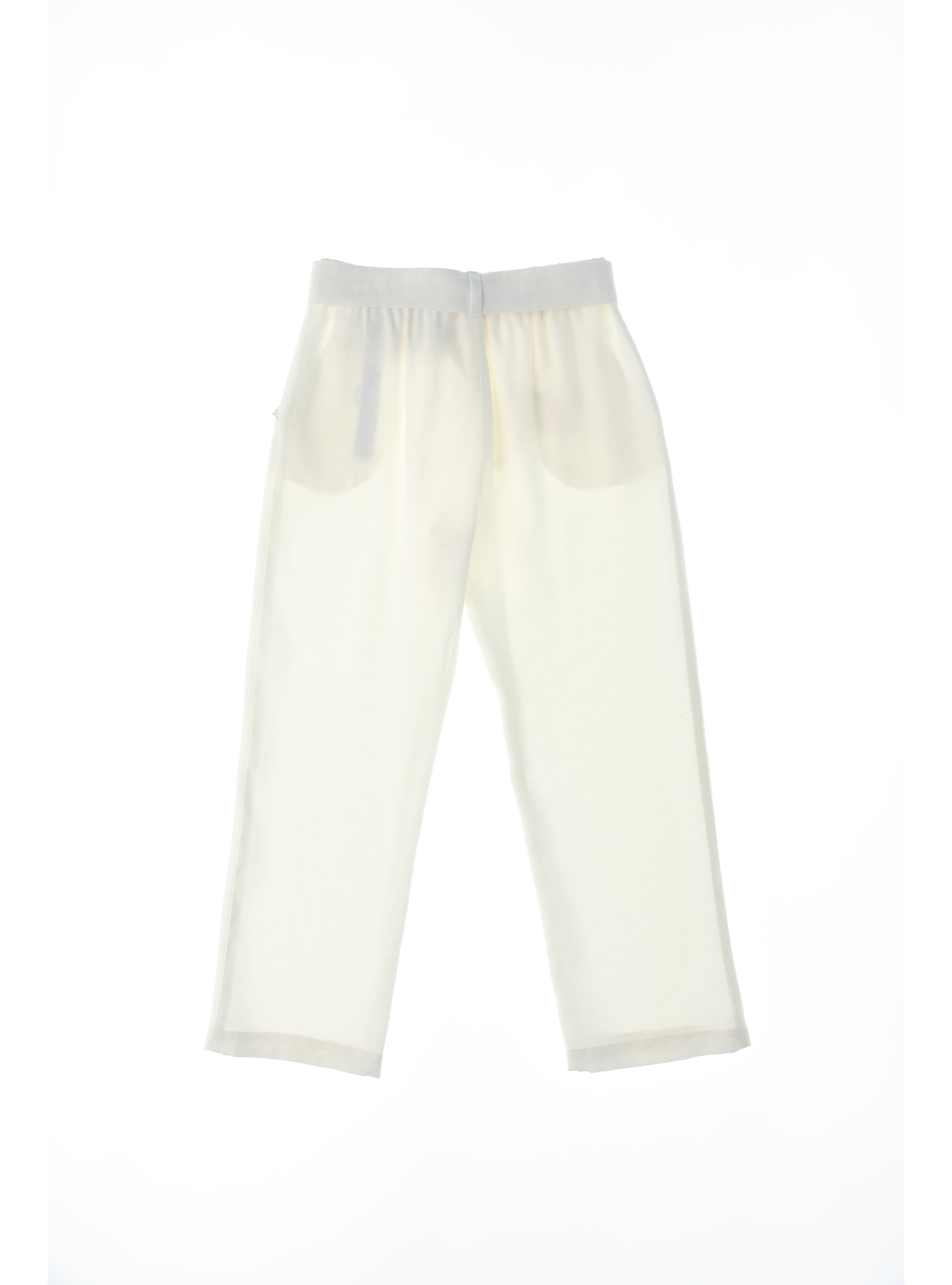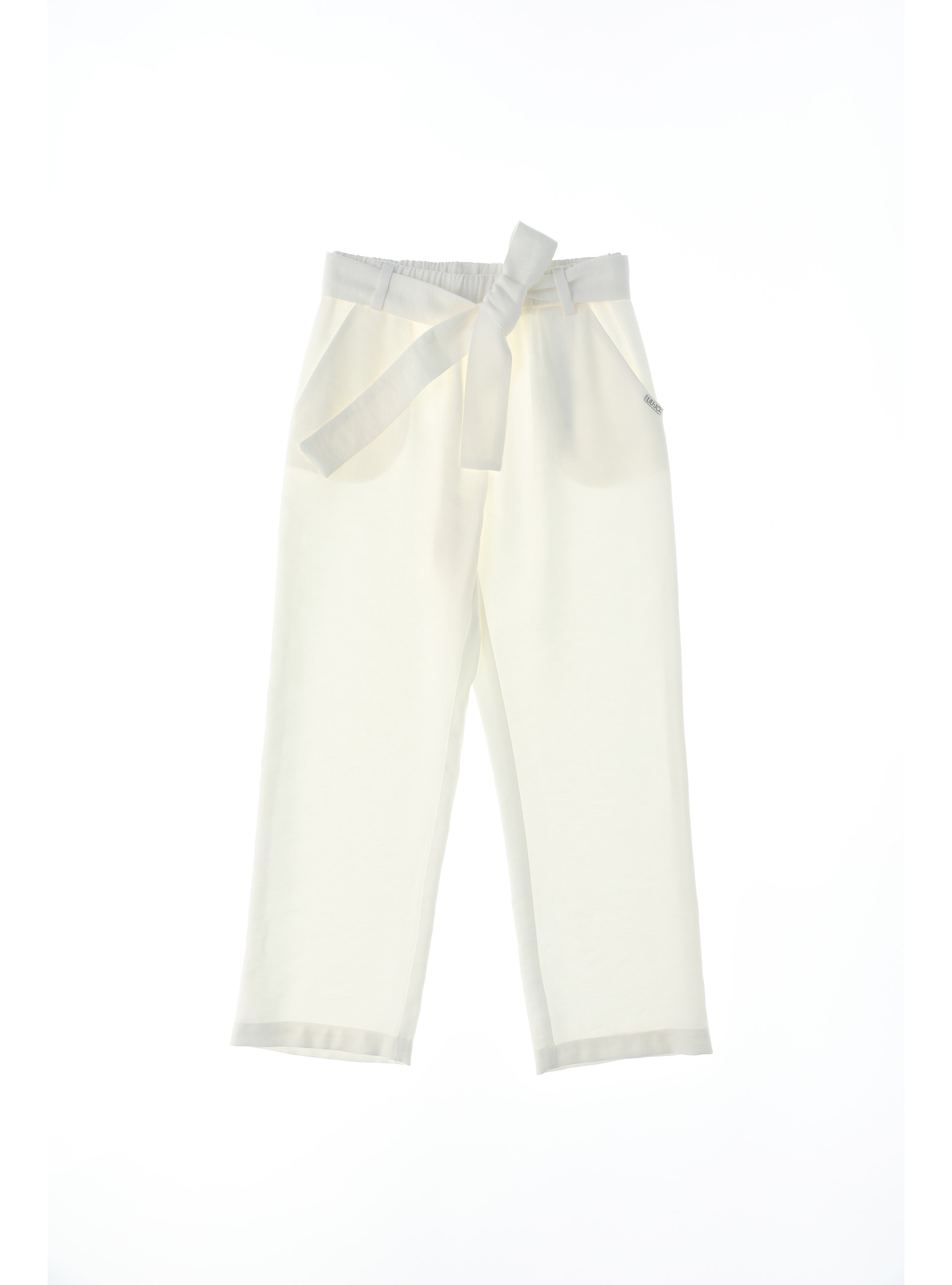 Pantalone con filato cangiante, vita elasticizzata con cintura abbinata, due tasche aperte sui lati,