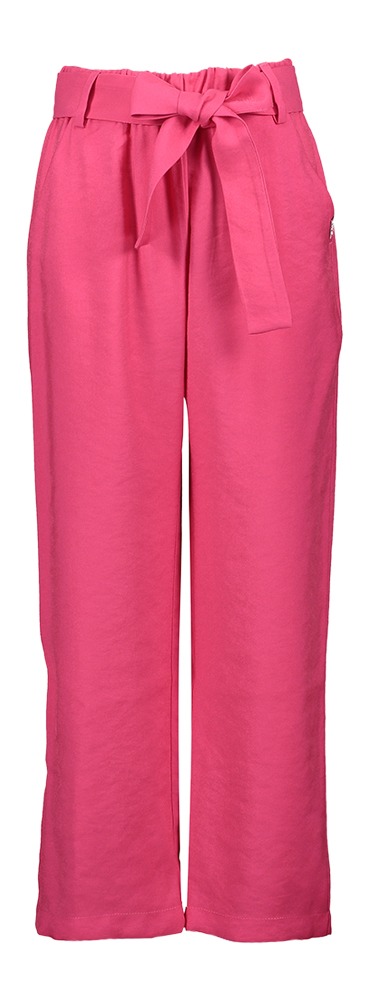 Pantalone per bambina a tinta unita con cintura a fiocco posto nella parte frontale, gamba dritta