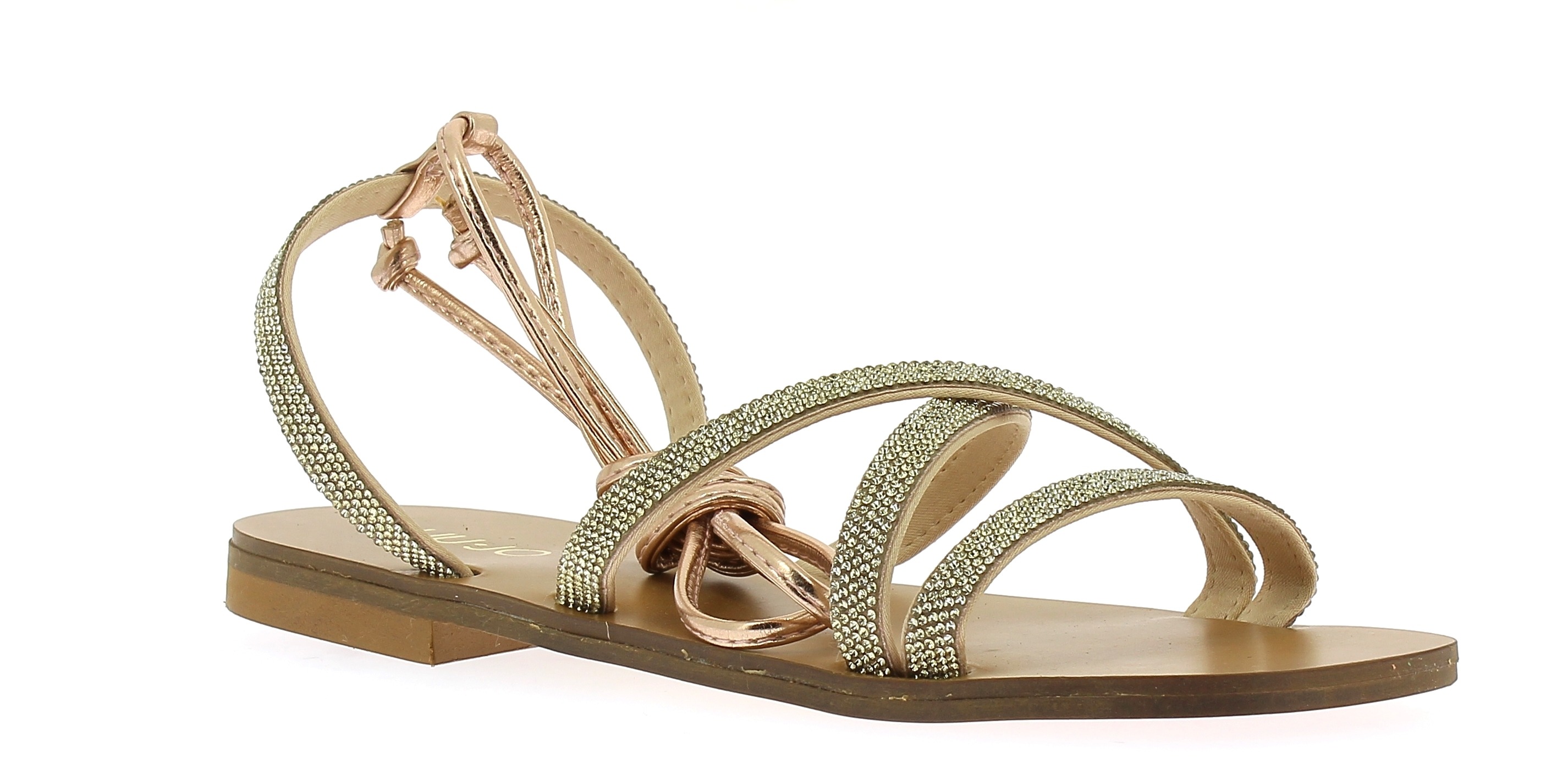 Sandalo da donna Liu Jo modello Saba con brillantini platino, chiusura con laccio alla caviglia, fodera tessuto, suola gomma