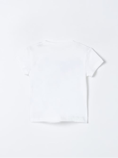 T-shirt a girocollo, in cotone, con stampa e fiocco sulla parte frontale