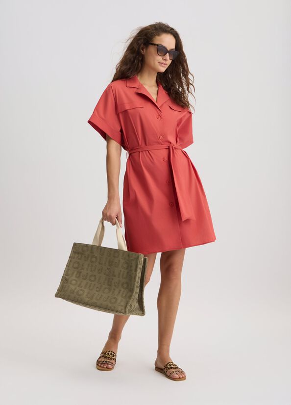 Abito corto chemisier in popeline di misto cotone stretch