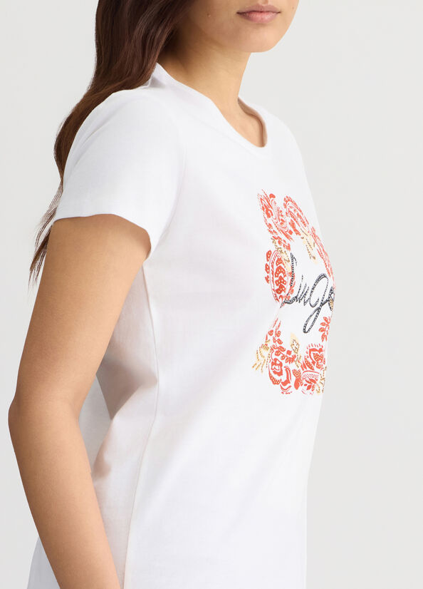 Stampa floreale con logo e strass