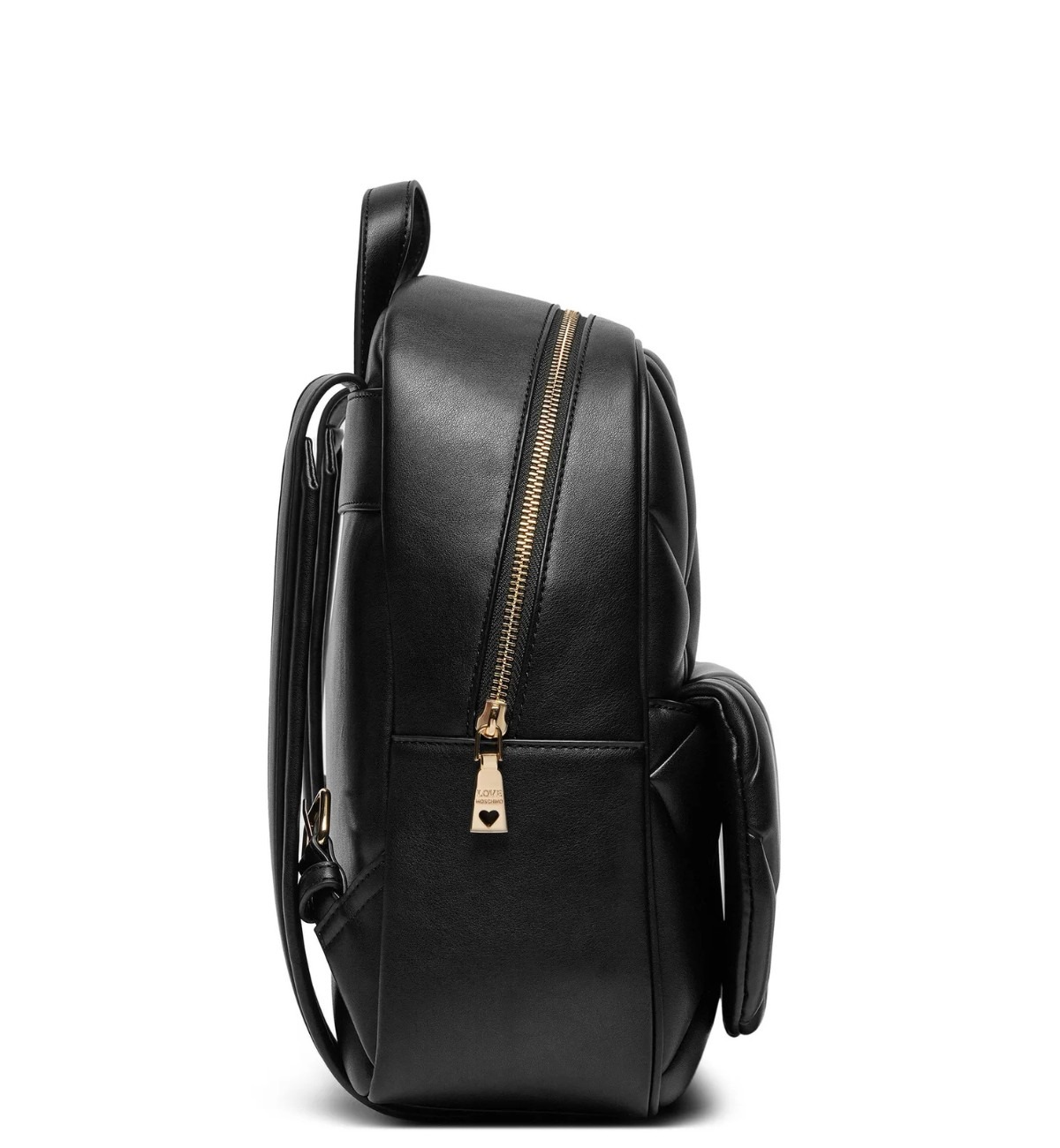Love Moschino zaino in pelle trapuntato con logo centrale con finiture oro lucide, spallacci regolabili, tasche interne e esterne.