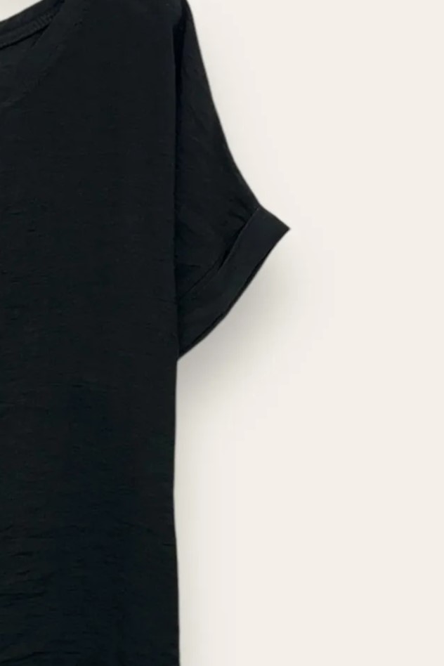 Maglietta a scatola in viscosa goffrata, bottoni decorativi lungo la schiena