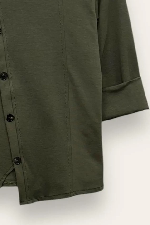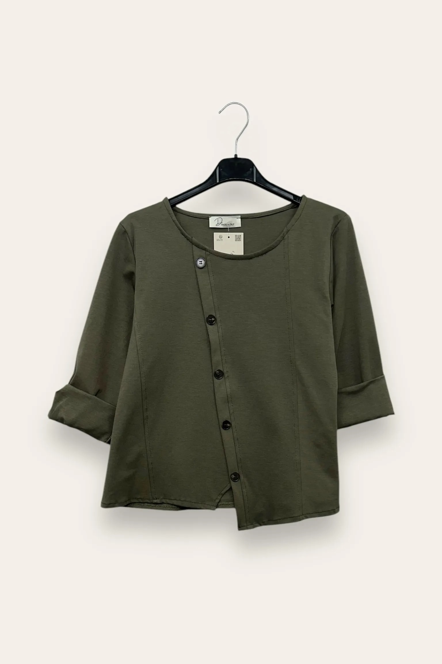 Blusa punto milano con bottoni decorativi trasversali