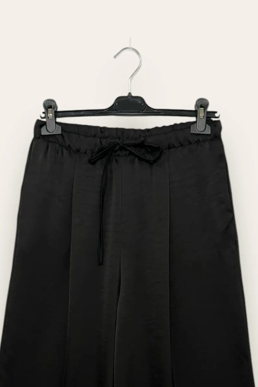 Pantalone in raso con finto risvolto