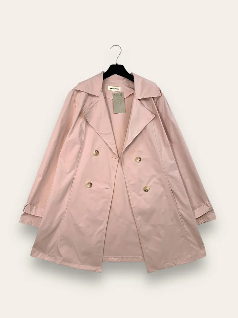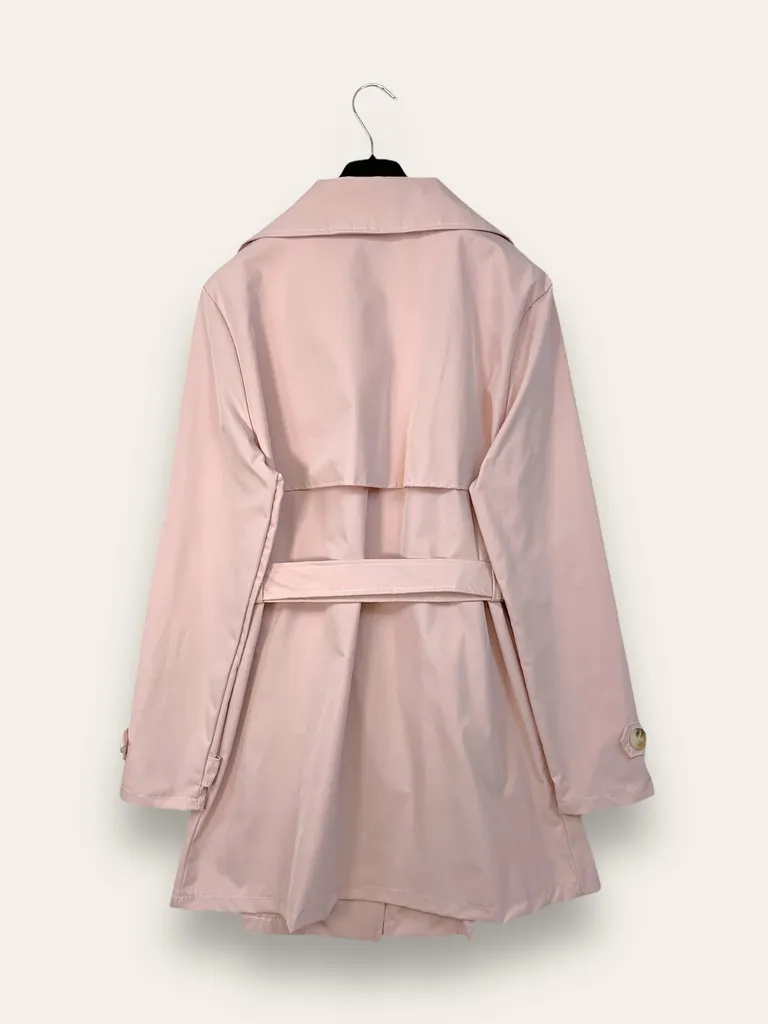 * Cappotto doppiopetto con cintura in vita.