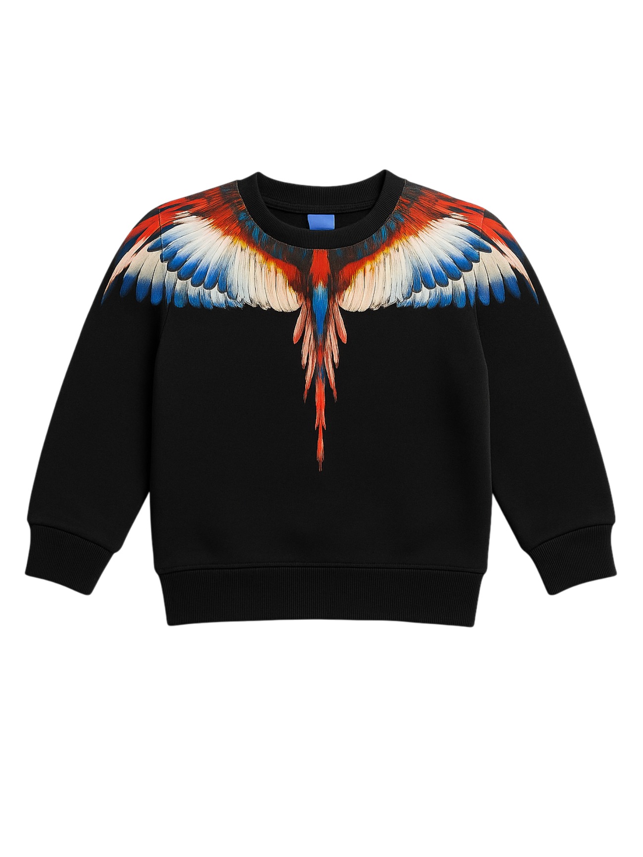 Felpa da bambino realizzata in spugna di cotone. La parte superiore è caratterizzata dalla stampa iconica multicolor.