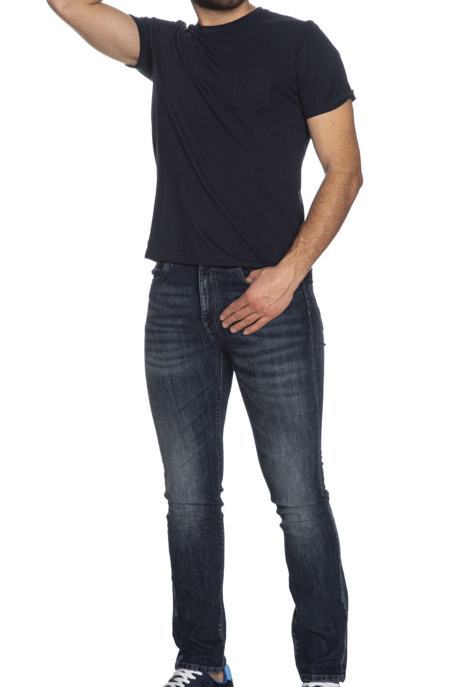 T shirt Markup Fine C da uomo in jersey di puro cotone, a manica corta, con girocollo in maglia, tasca patch sul petto e piccolo logo in tessuto e ricamo a filo bicolore laterale sul fondo