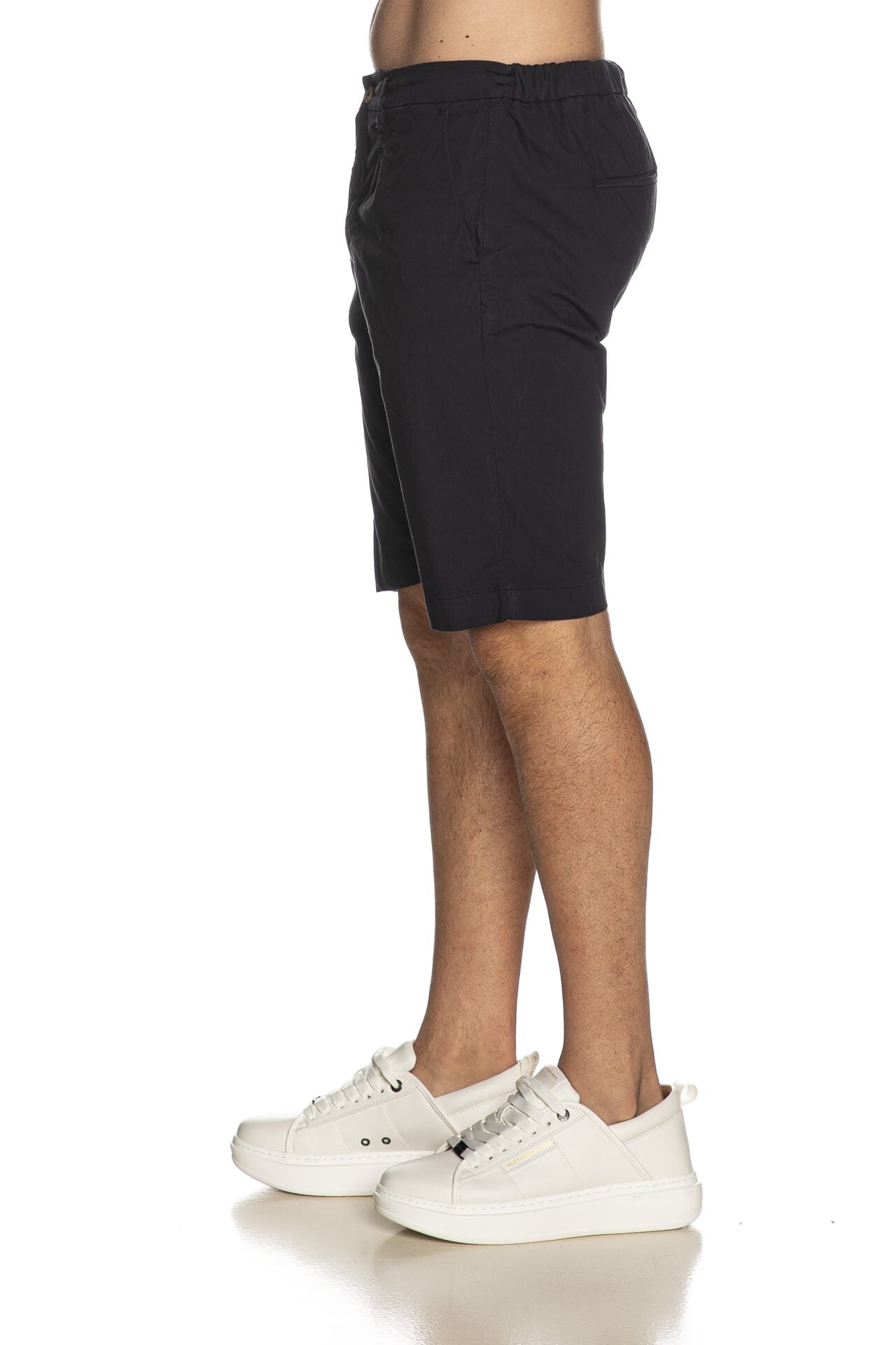 Bermuda Markup Mk Laccio Pp Tc da uomo in popeline di cotone stretch, modello chino regular fit, con elastico retro vita, chiusura zip coperta e coulisse interna, pinces, tasche laterali america e tasche posteriori a filo con piccola placchetta logo in acciaio cucita su un lato