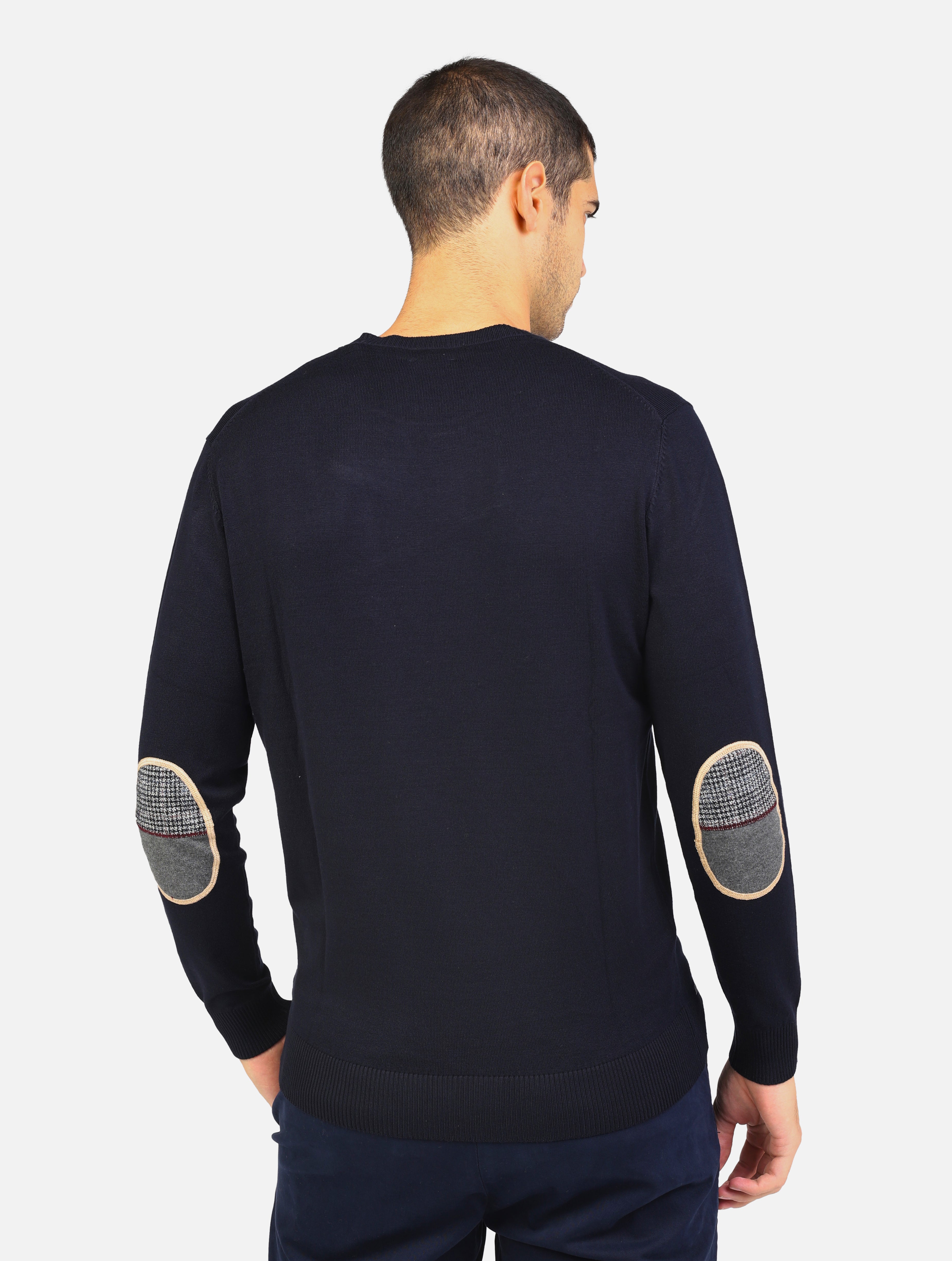 maglia girocollo a maniche lunghe in viscosa e inserti con toppe