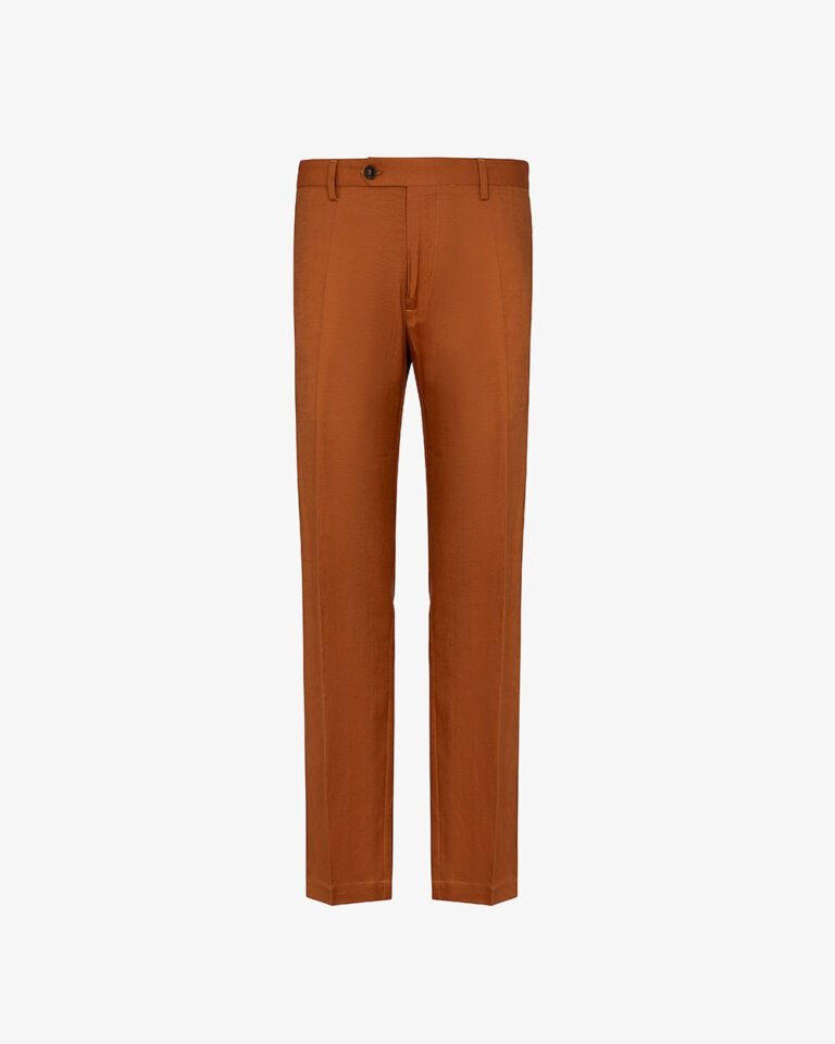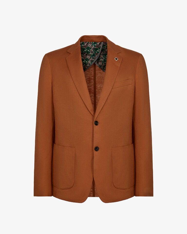 Abito in lino viscosa Blazer regular fit realizzato in tessuto di lino. Collo con revers a cran e maniche lunghe con polsino con bottoni. Taschino a filetto sul petto e tasche con patta sui fianchi. Dettaglio di tasca interna. Orlo con spacchi posteriori. Chiusura frontale con bottoni. Pantaloni regular fit realizzati in tessuto di lino. Tasche anteriori e dettaglio di tasche posteriori a filetto. Chiusura frontale con cerniera e bottone.