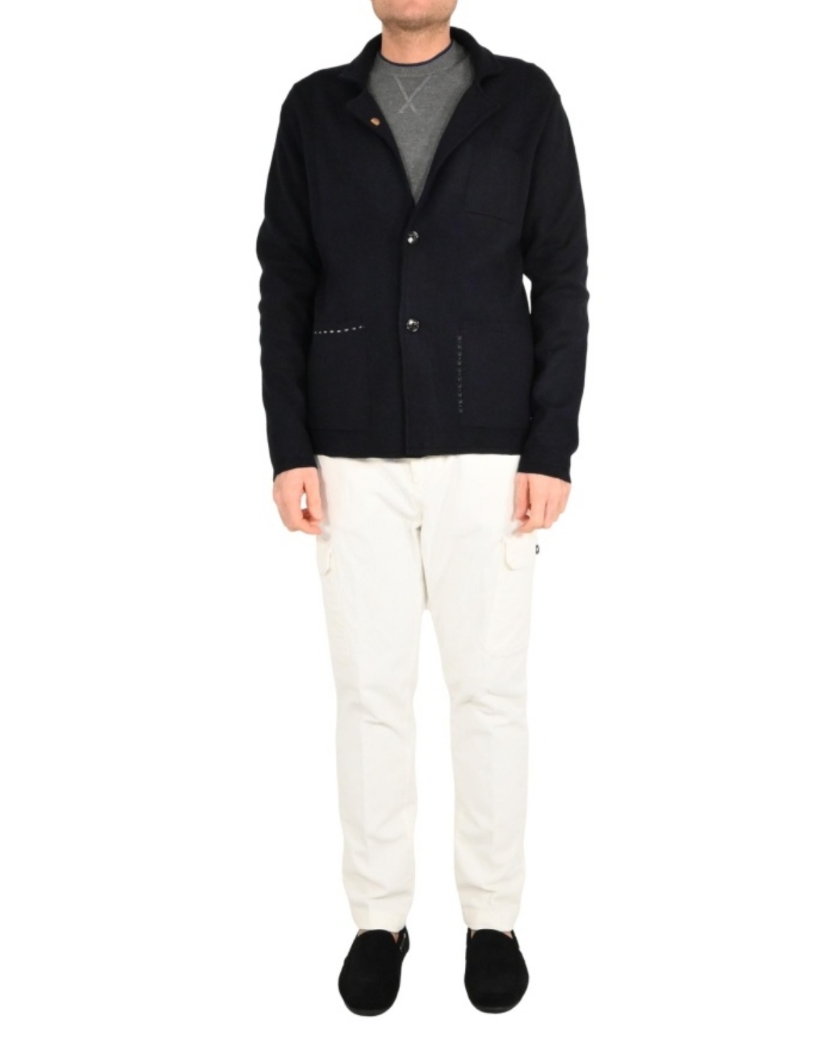 * Modello con rever e abbottonatura frontale a due bottoni.