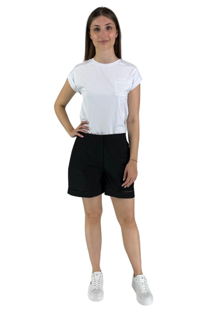 Shorts in cotone a tinta unita, con tasche alla francese sui fianchi, con patch logo sotto la tasca sinistra e passamaneria.